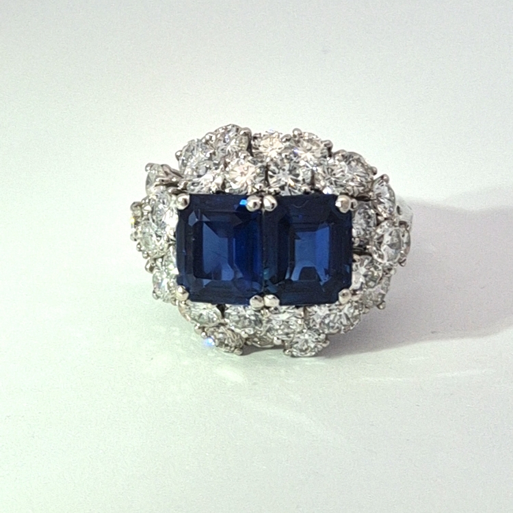 2 sapphires, 1.79cts each, within a cluster of brilliant cut diamonds, 3.50cts, signed for Mauboussin