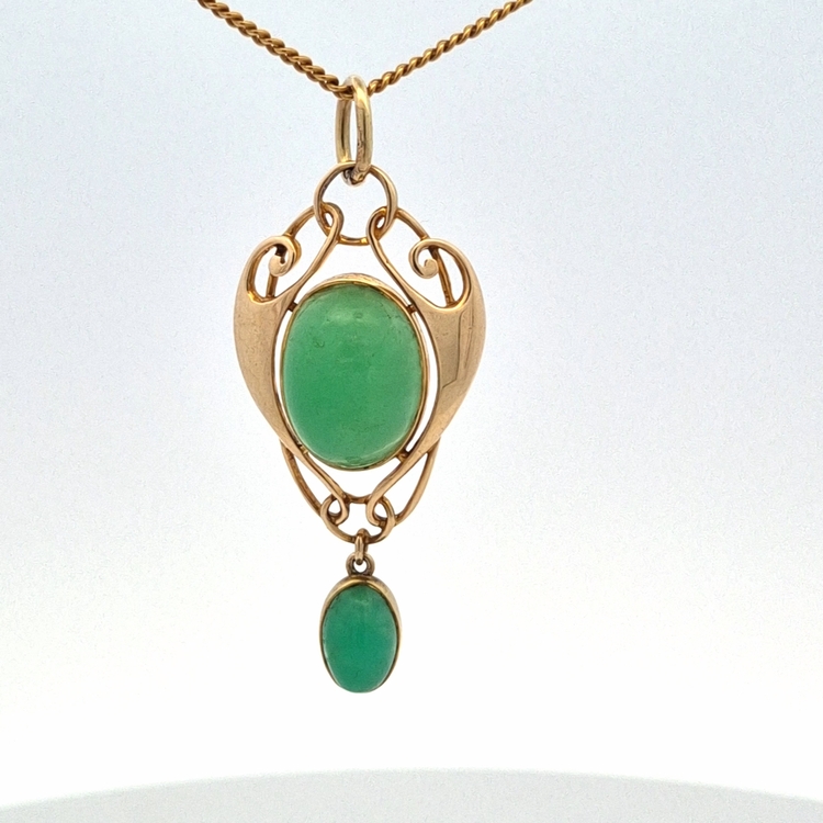 Gorgeous turquoise and 15ct gold Art Nouveau pendant by Murrle Bennet, with 15ct yellow gold chain