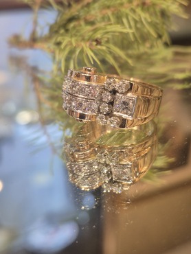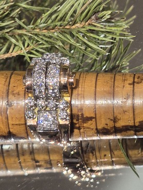 Fabulous emerald, 3.42ct, within a border of diamonds, 0.22ct, Platinum.