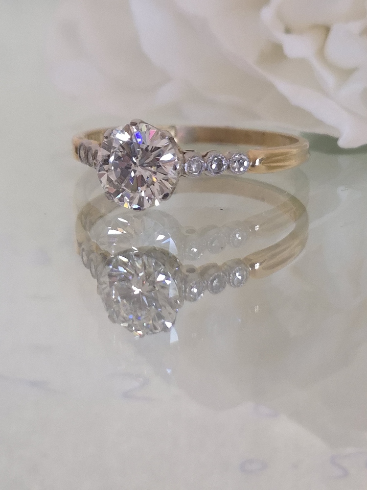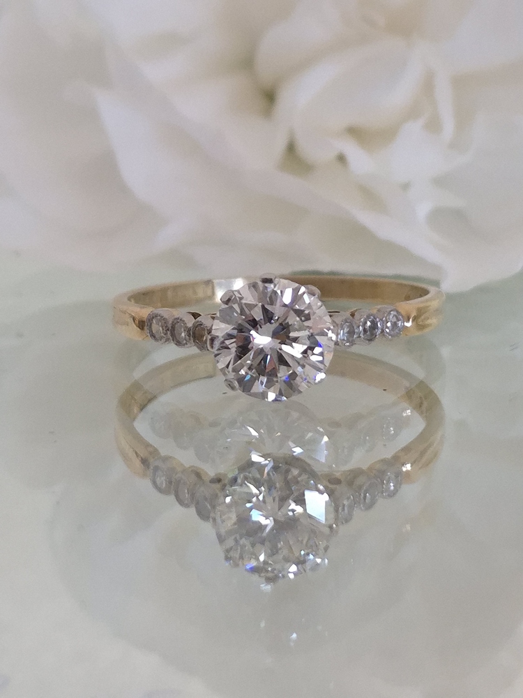 0.94ct diamond to diamond set shoulders, 18ct yellow gold
