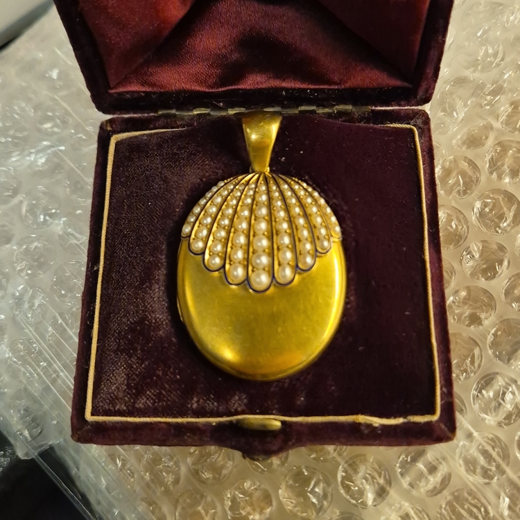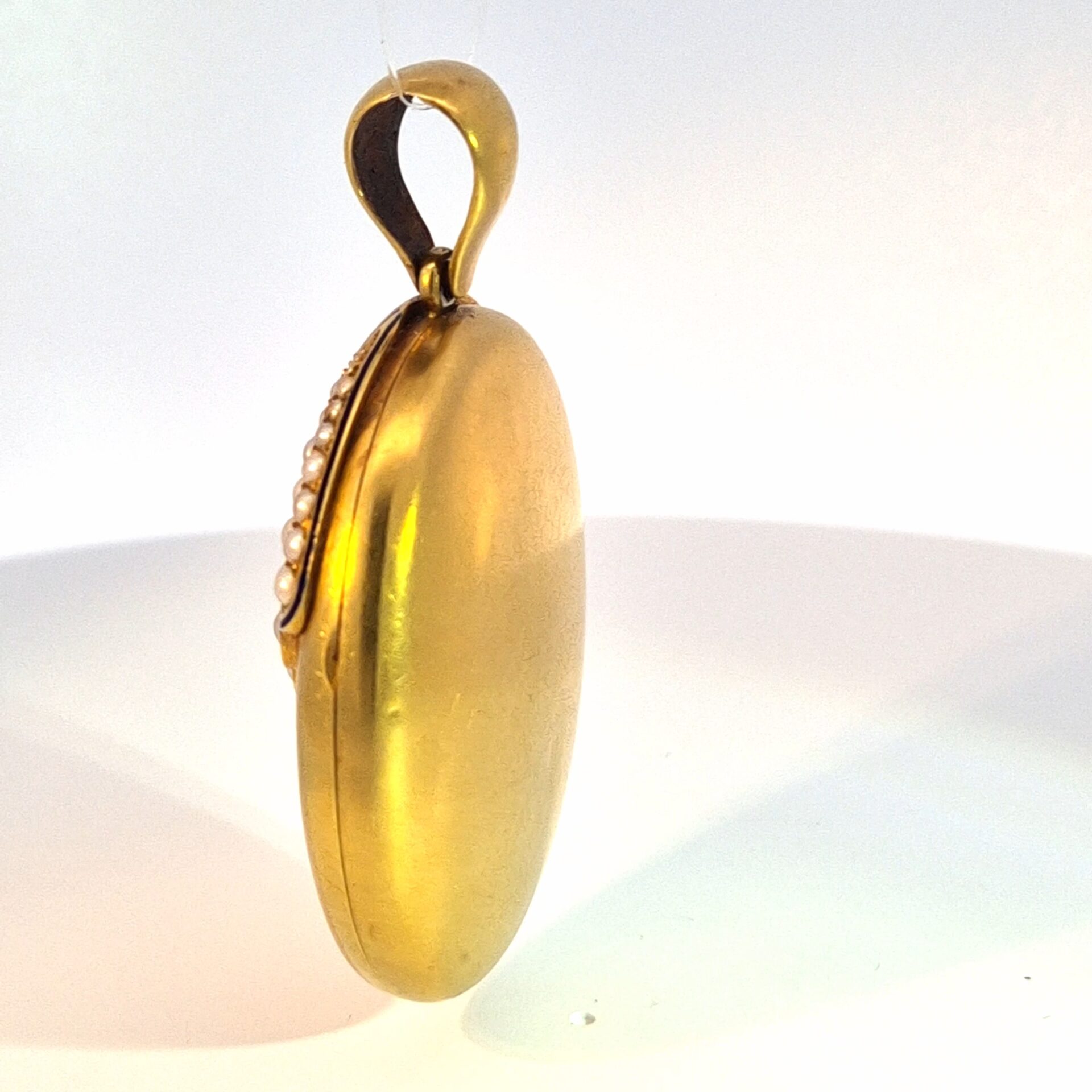 AVT8899 Natural pearl and enamel locket, circa 1880