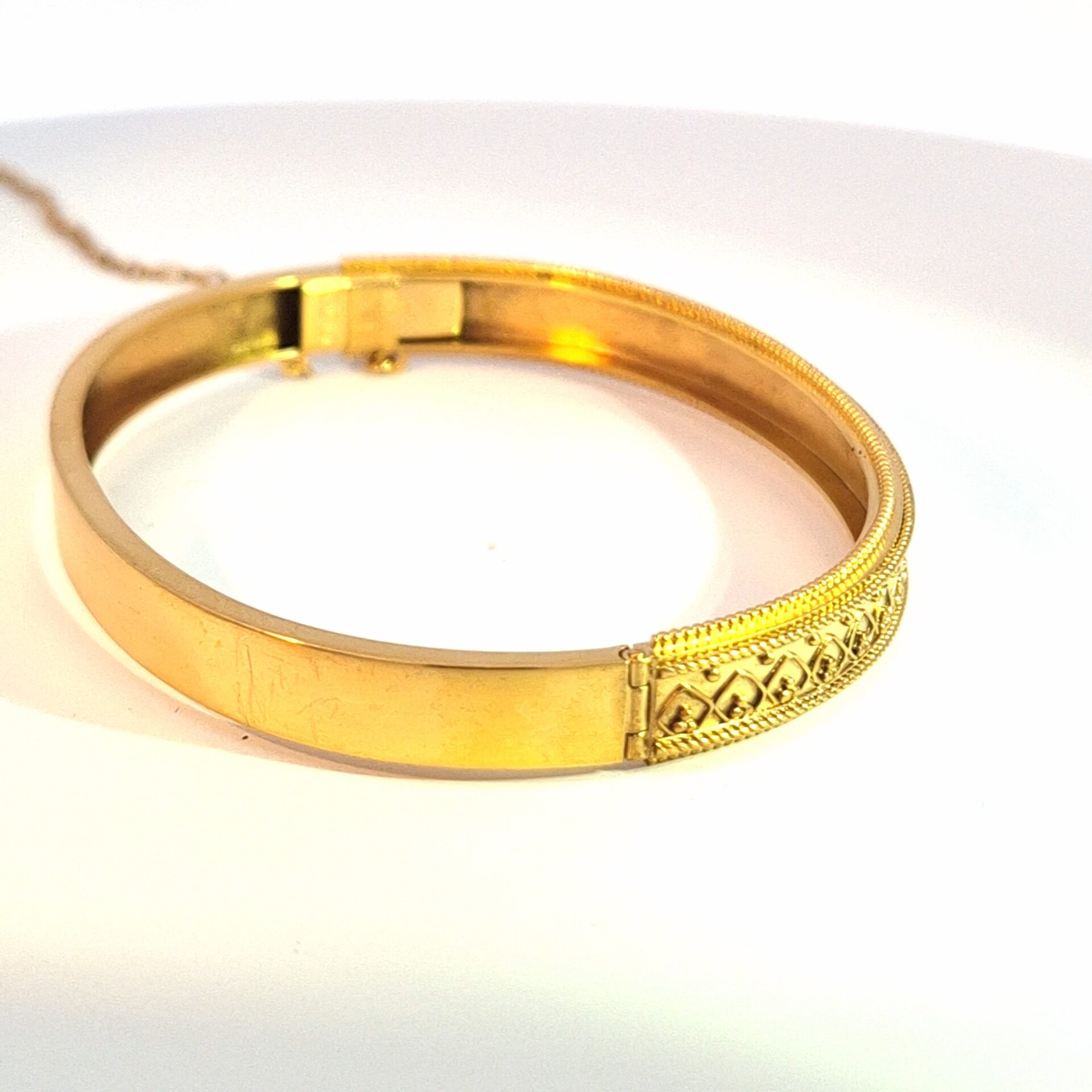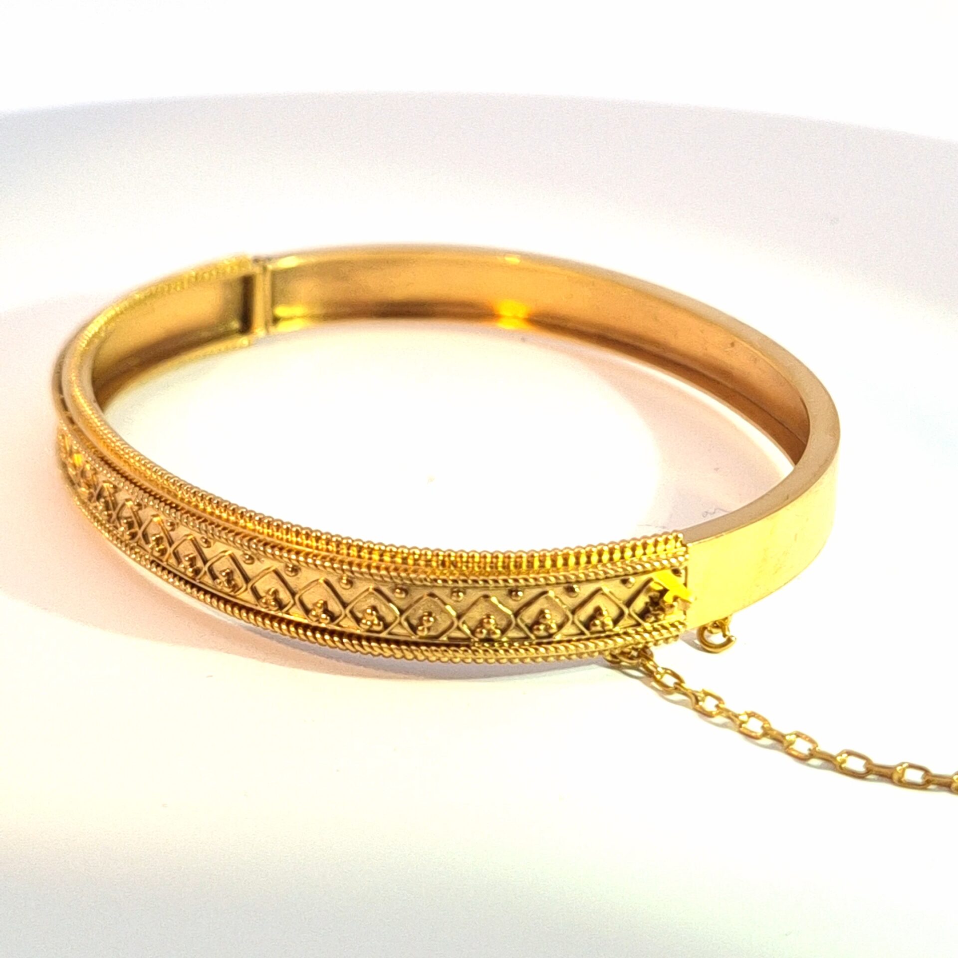 15ct yellow gold wonderful quality Etruscan revival hinged bangle with fine granulation
